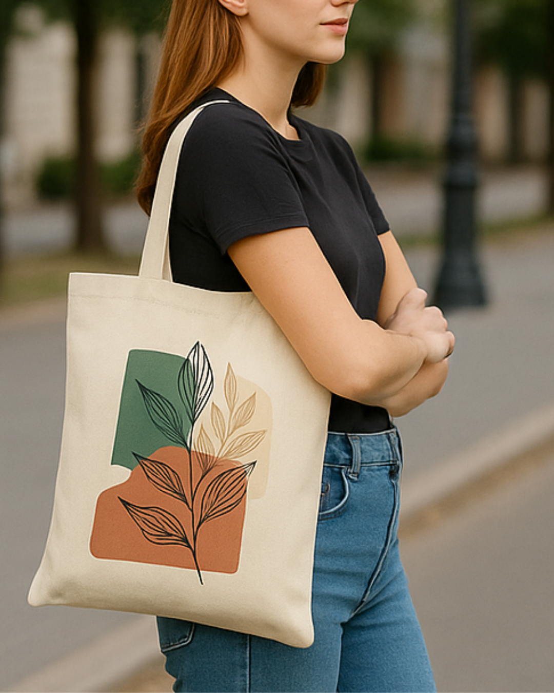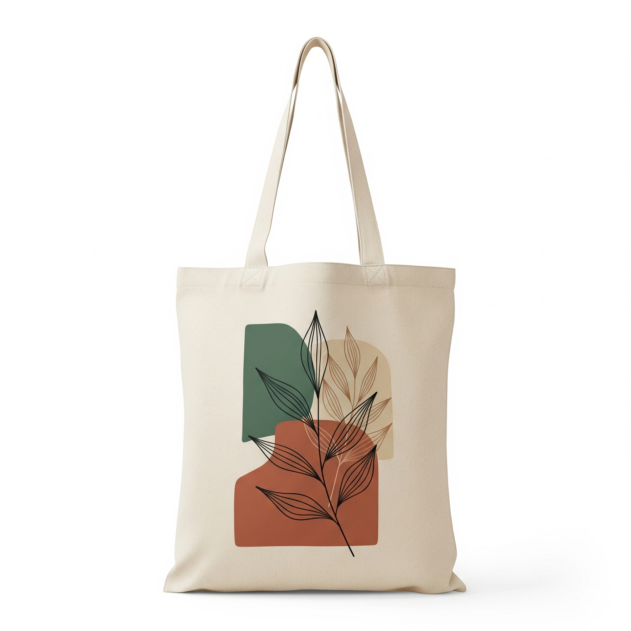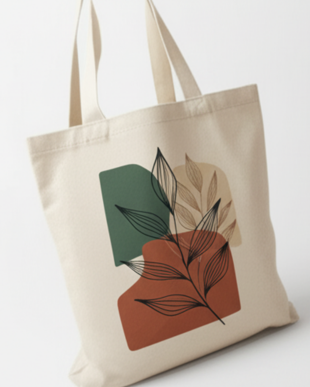 Featuring a unique and artistic minimalist design with line-drawn leaves in earthy tones of green, terracotta, and beige, this bag isn’t just practical – it’s a statement piece. The soft, natural canvas texture combined with sturdy handles and neat stitching ensures both durability and comfort.